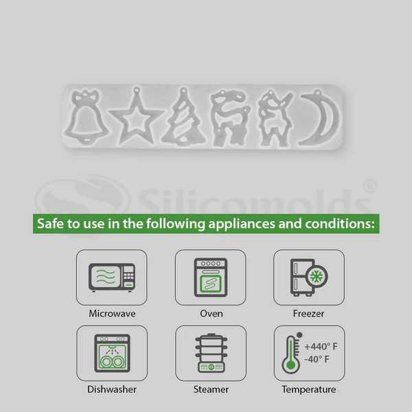 Create festive resin decorations with this Christmas-themed silicone mold. Perfect for ornaments, coasters, keychains, and holiday DIY resin projects.